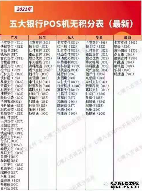 信Y卡積分是銀行鼓勵消費,提成信用等級等作用,以前刷信Y卡積分可以達到95%,現在由于銀行規則調整,導致很多pos機刷信Y卡沒有積分,今天為大家介紹下比較特殊的幾家銀行,分別是華夏銀行,郵儲銀行,民生銀行,廣發銀行,中國光大銀行