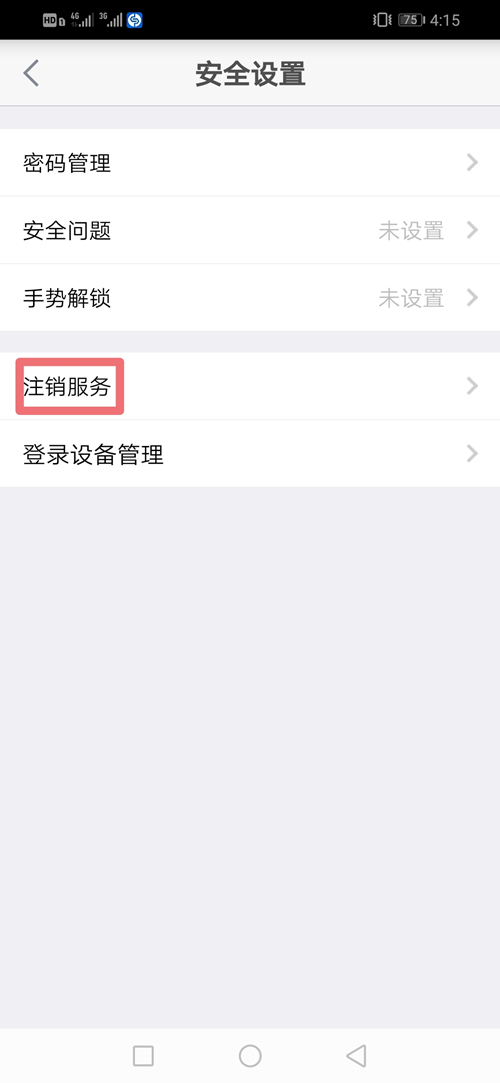 3:進入安全設置,點注銷服務,如下圖所示