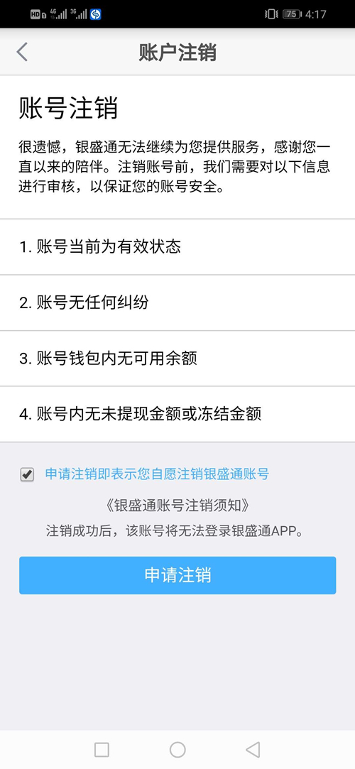 特別注意:注銷成功后,該賬號將無法登陸銀盛通APP!